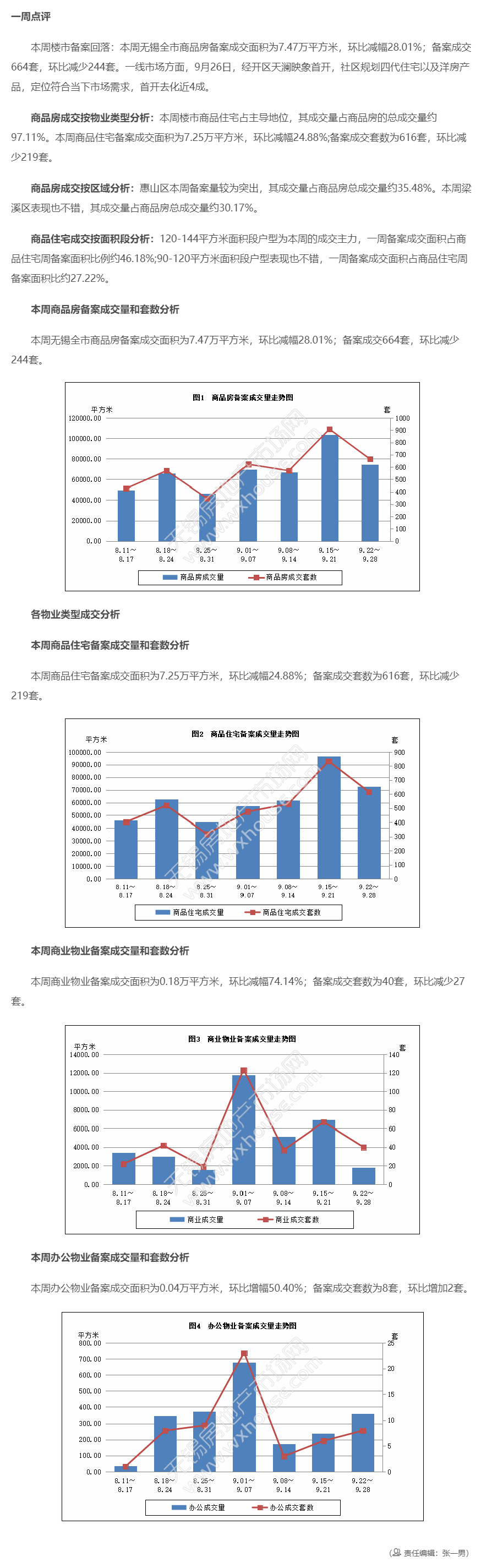 內容概述 9.22~9.28無錫商品房一周備案成交7.47萬平方米