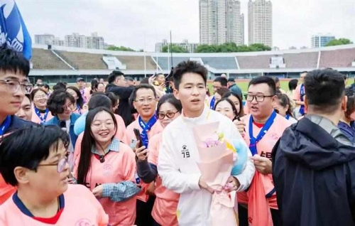 熱情的球迷們爭先恐后地將鮮花獻給球員,高聲喊著每個人的名字,現(xiàn)場的掌聲與歡呼聲交織。經(jīng)過短暫互動,無錫隊全體成員與球迷們一同走進體育場,在綠茵場上合影留念。