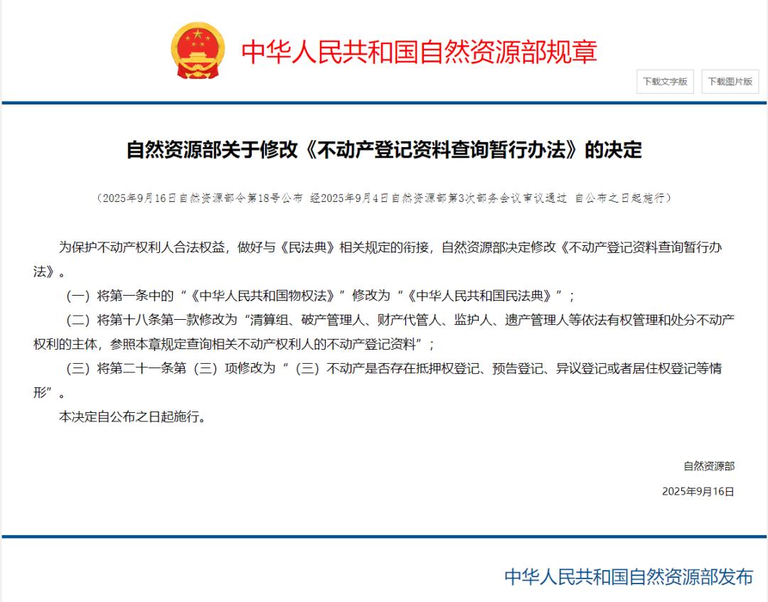 自然資源部關(guān)于修改《不動(dòng)產(chǎn)登記資料查詢暫行辦法》的決定