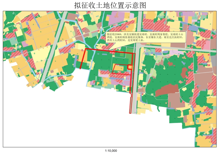 本次擬征收土地位于安鎮(zhèn)街道安南村、安南村周家巷組、安南村土山灣組、安南村南張巷組范圍內(nèi)。擬征收土地位置詳見附圖。