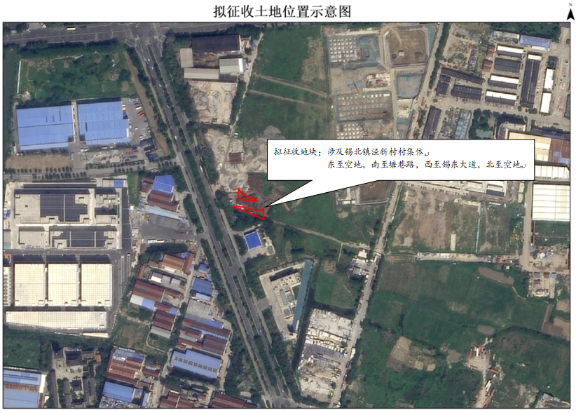 本次擬征收土地位于錫北鎮(zhèn)涇新村村集體范圍內(nèi)。擬征收土地位置詳見附圖。