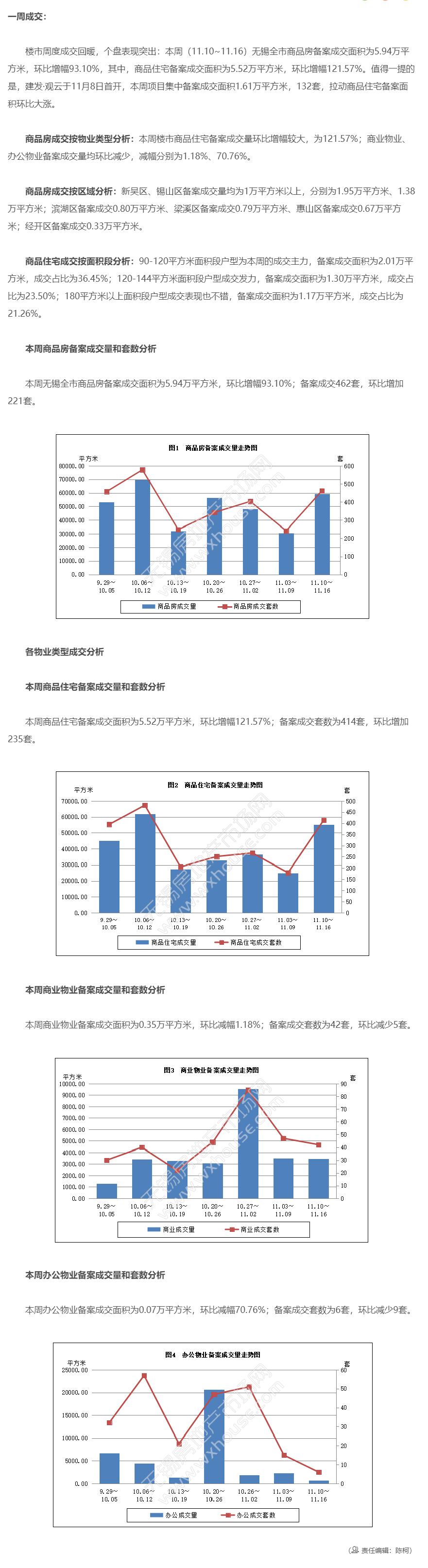 內(nèi)容概述 11.10~11.16無錫商品房一周備案成交5.94萬平方米