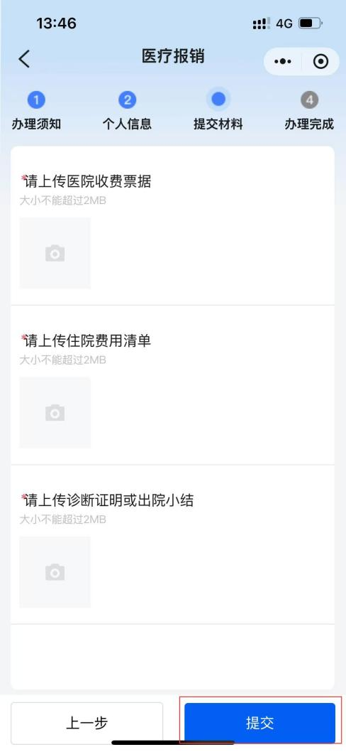 上傳報(bào)銷(xiāo)資料圖片,點(diǎn)擊“提交”即可,申請(qǐng)成功后可在“我要查”模塊選擇“審核結(jié)果查詢(xún)”查看審核結(jié)果。