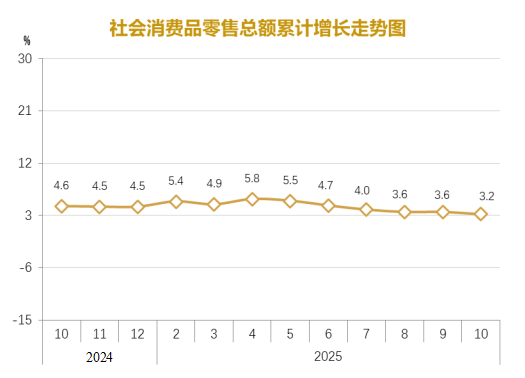 內(nèi)容概述 2025年1-10社會消費品零售總額增長3.2%
