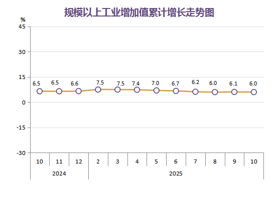 2025年1-10月規(guī)模以上工業(yè)增加值增長6.0%
