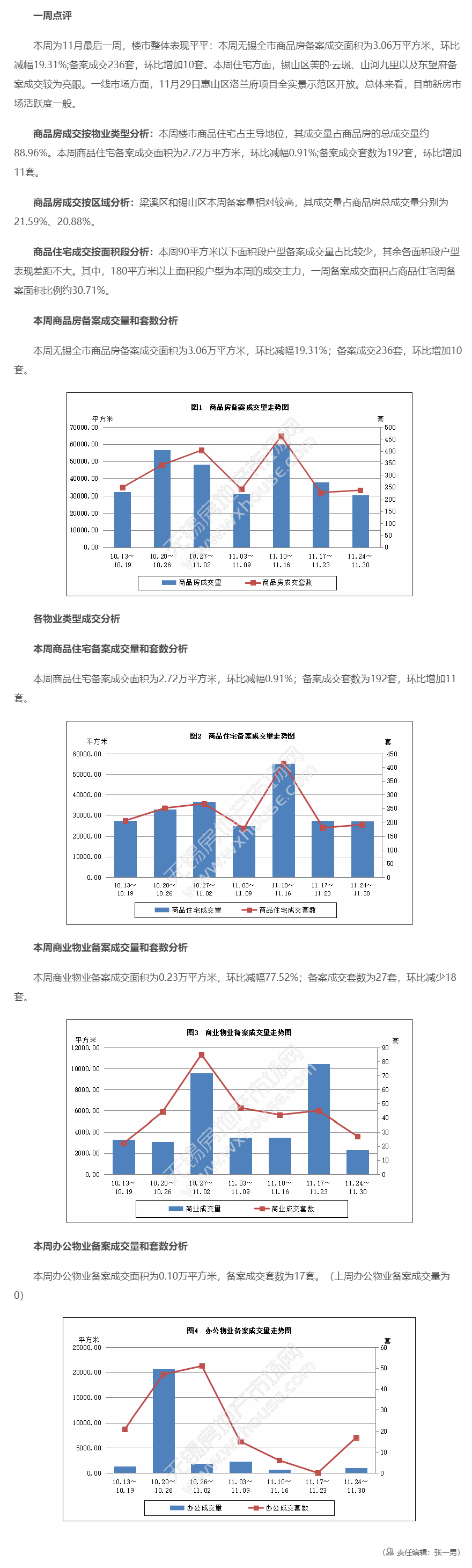 內容概述 11.24~11.30無錫商品房一周備案成交3.06萬平方米