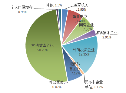 2021年四季度實(shí)繳職工數(shù)按不同性質(zhì)單位分類(lèi)占比圖
