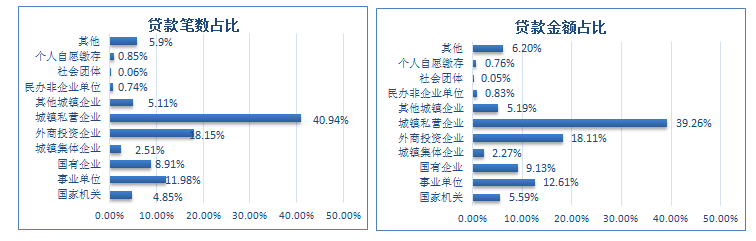 2021年四季度職工貸款筆數(shù)及貸款金額按單位性質(zhì)分類(lèi)占比圖
