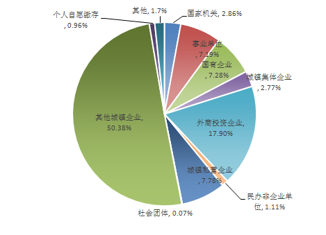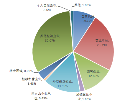 從繳存主體看,以非公群體為主,繳存人數(shù)占三季度實繳職工數(shù)的79.9%,其中城鎮(zhèn)私營企業(yè)及其他城鎮(zhèn)企業(yè)職工繳存占比更是高達58.16%。具體繳存結構如下: