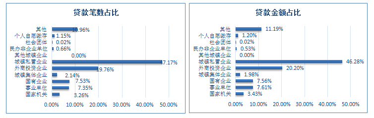 2022年三季度職工貸款筆數(shù)及貸款金額按單位性質(zhì)分類占比圖