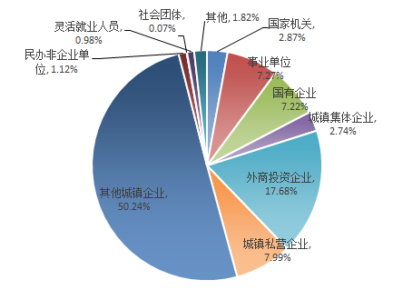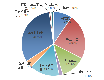 2022年四季度實(shí)繳職工數(shù)按不同性質(zhì)單位分類占比圖