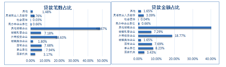 2022年四季度職工貸款筆數(shù)及貸款金額按單位性質(zhì)分類占比圖