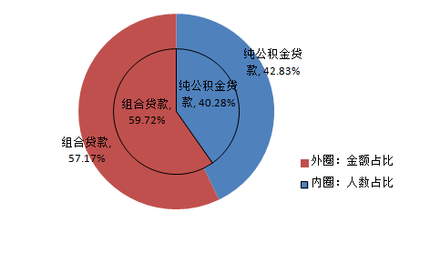 從貸款群體來看,剛需與改善型住房需求職工分別占貸款總?cè)藬?shù)的32.68%和59.67%。從單位性質(zhì)來看,以城鎮(zhèn)私營企業(yè)及其他城鎮(zhèn)企業(yè)職工為主,貸款筆數(shù)和貸款金額占比分別為55.85%、54.79%。從購房面積來看,職工貸款購買小于90㎡、90-120㎡房屋居多,分別占貸款總?cè)藬?shù)的32.68%、36.64%。從主借人繳存基數(shù)來看,貸款主要以中、低收入職工為主,分別占貸款總?cè)藬?shù)的32.71%、65.12%。從貸款類型來看,純公積金貸款和組合貸款占比分別為40.28%、59.72%。具體放貸結(jié)構(gòu)如下: