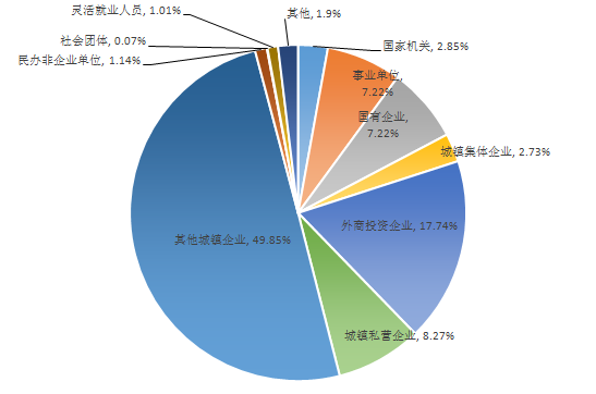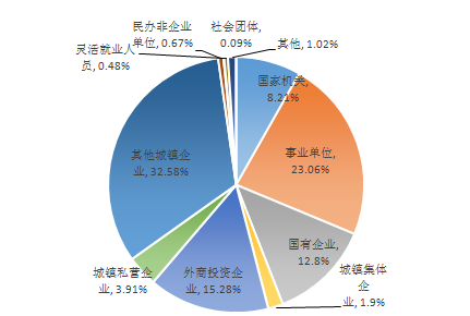 2023年一季度實(shí)繳職工數(shù)按不同性質(zhì)單位分類(lèi)占比圖