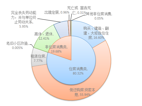 2023年一季度,住房消費(fèi)類(lèi)提取金額為48.4億元,環(huán)比增長(zhǎng)5.29%,占四季度提取額的80.32%。其中,購(gòu)房購(gòu)買(mǎi)、建造、翻建、大修自住住房和還貸提取占重要位置,提取金額分別10億元、33.71億元,占四季度提取額的16.6%、55.94%。具體提取結(jié)構(gòu)如下: