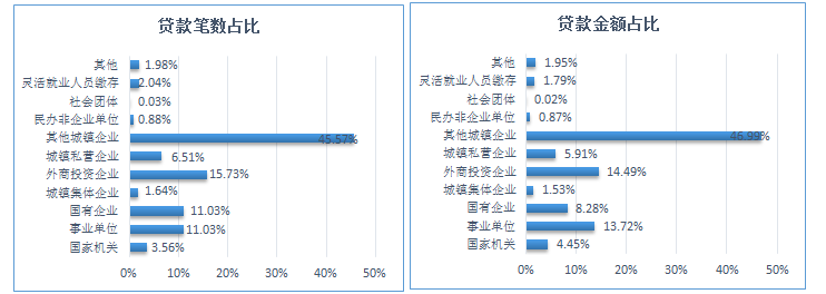 2025年二季度職工貸款筆數(shù)及貸款金額按單位性質分類占比圖