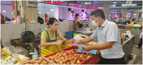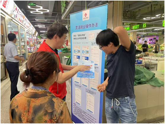 為更好地服務(wù)轄區(qū)內(nèi)靈活就業(yè)人員參與住房公積金繳存,惠山分中心業(yè)務(wù)科負(fù)責(zé)人和“金管家”志愿者頂著烈日高溫,深入轄區(qū)農(nóng)貿(mào)市場開展政策宣講活動,將公積金惠民措施送到商戶"家門口"。