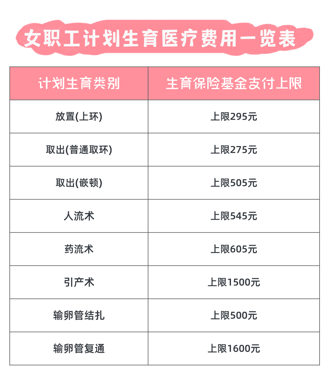 ?。?)計劃生育醫(yī)療費:女職工實施放置或者取出宮內(nèi)節(jié)育器、人工流產(chǎn)術(shù)或者引產(chǎn)術(shù)、輸卵管結(jié)扎以及復(fù)通手術(shù)等,所發(fā)生的符合生育保險規(guī)定的醫(yī)療費用,以及在手術(shù)和住院期間,因?qū)嵤┯媱澤中g(shù)引起的并發(fā)癥的醫(yī)療費用。